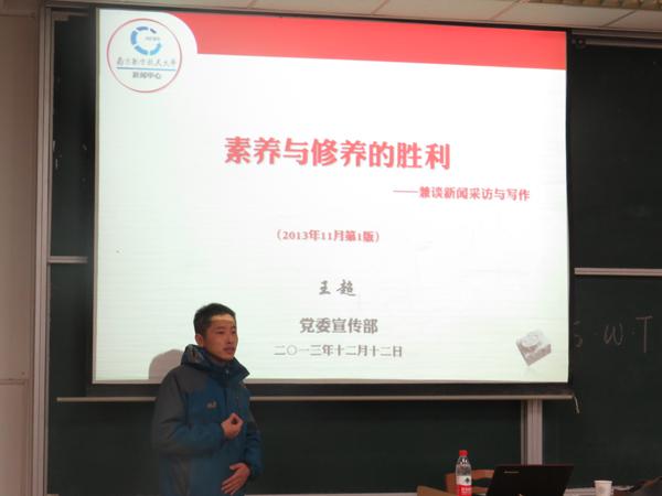 12月12日,米兰体育官网 第十三期S.W.T.工作坊之新闻采访与写作在将军路校区举行。本期工作坊由南航报编辑部主任王超担任主讲,院团委书记季娟作为嘉宾出席了本次活动。参加本期工作坊的还有2012、2013级的学生骨干。 在对南航米兰体育进行简要介绍后,王超从政治家办报、历史家办报、新闻家办报3个话题引入对新闻工作价值观的探讨,强调好的新闻采写缘于正确的新闻价值观的确立,并简要阐述了“什么是新闻”“新闻基本特征”等基础新闻理论观点。在新闻采访业务指导环节,他指出,“七分跑,三分写”是新闻记者的重要素养,并引用20世纪初著名记者黄远生的“四能说”,阐述新闻记者应着重培养的四种新闻采写技能。针对同学们的具体采写需求,王超重点讲解了“消息”的写作要领,并以丰富的实例向同学们做了详细阐述。 在互动环节中,王超对活动现场同学提供的近期3篇新闻稿进行了点评和修改,并对同学提出的问题进行了一一解答。 培训最后,王超与大家共勉道:“我们都是南航的新闻工作者,讲述南航‘好’故事,传播南航‘好’声音是我们共同努力的方向”。