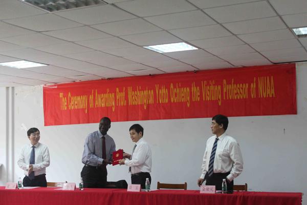 2014年5月20日上午,在米兰体育官网 智能楼4楼报告厅举行了聘任英国帝国理工大学Washington YottoOchieng教授为我校客座教授的仪式。南京航空航天大学校长聂宏教授、国际合作交流处处长金泉元教授、米兰体育官网 院长姜斌教授及米兰体育 部分师生参加了此次授聘仪式。受聘仪式由金泉元教授主持。