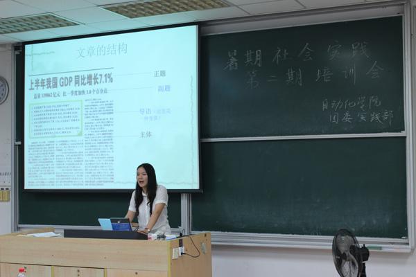 第二期培训在第一期整体介绍的基础上,对新闻稿、摄影、调研报告进行了专项培训。院团委米兰体育主任赵星星对新闻稿的写作做了一些指导,她对新闻稿的写作方法、基本要求、基本结构等方面进行了详细的讲解。暑期社会实践精彩照片奖得主张苏哲指出拍照的核心是新闻价值,并且强调了新闻照、人文照、风景照拍摄技巧的不同。2013年暑期社会实践校级明星团队“秸秆行动”的队长张根源则为大家阐述了整个调研的实施过程,从前期准备到过程再到后期加工,每一步都是一次成功调研的关键。最后院团委实践部部长王鹤彬做了总结发言,再次强调了一些注意事项。