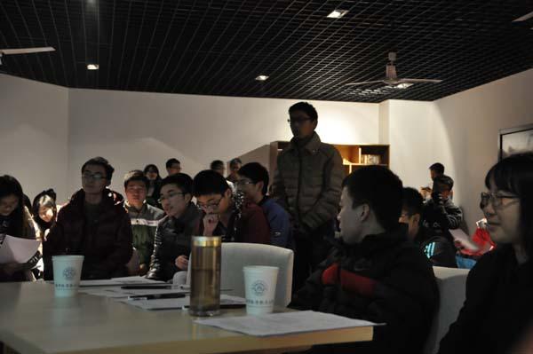 在同学自由交流个人读书经历和感想的环节中,大家重拾了对读书的喜爱与热忱。“你话我猜”的游戏环节,同学们积极参与,现场气氛轻松愉悦。最后,各小组从亲情、决定、爱国等话题中选择一个展开讨论并派代表交流陈述小组观点。何朋老师总结时结合自己亲身经历为大家讲述了亲情的可贵。