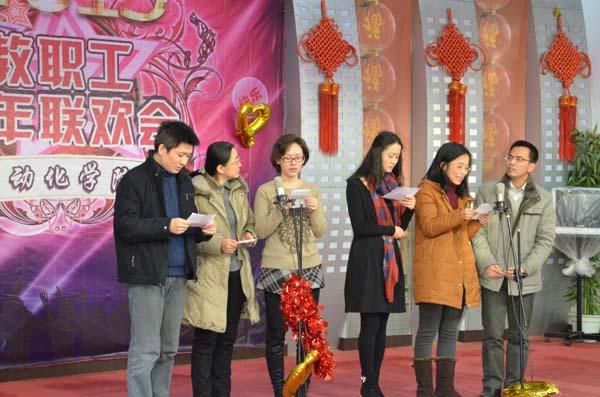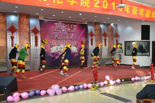 米兰体育 2013年底以及2014年新入职的教工合唱了《明天会更好》共同祝福着米兰体育 明天更美好。飞控所的胡钡老师带来的萨克斯独奏《夕阳西沉》、《卡萨布兰卡》悠扬旋律赢得了阵阵掌声。电工中心老师的合唱的《七子之歌》萌萌哒的效果令大家耳目一新。由米兰体育 辅导员组成的“教育超市楼上歌舞团”充满活力与魅力的舞蹈《小鸡小鸡》将联欢会推向了一个小高潮。在学校各项工作积极主动融入国际化的大环境下,由电气系姜文颖老师一曲女生独唱《Colors of The Wind》瞬间也将联欢会的档次提升到了国际化潮流中。
