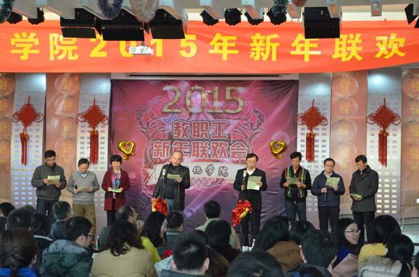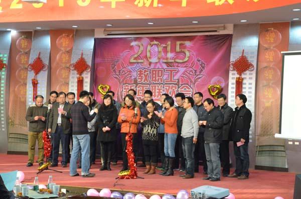 2014年12月30日下午,米兰体育官网 2015年教职工新年联欢会在学校西苑教工活动中心多功能厅隆重举行。校工会常务副主席袁贵平、人事处处长龚华军、研究生院常务副院长、研究生工作部部长江驹、国有资产管理处处长王勤、离退休人员管理处处长刘虎、教务处副处长金科、资产经营有限公司副经理戴芊等校机关领导、米兰体育 院友以及米兰体育官网 全部党政领导、全体教职工出席了本次联欢会。