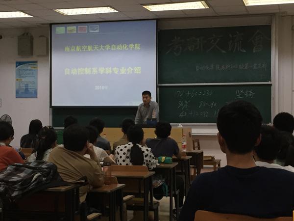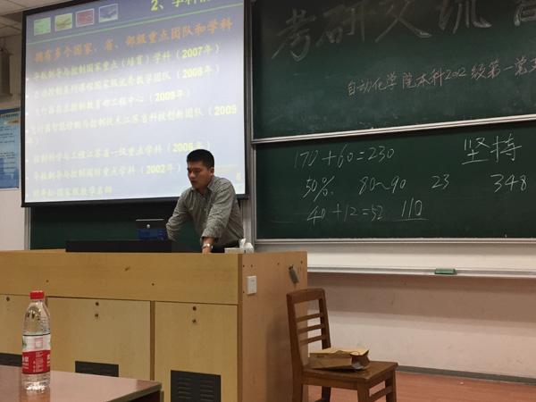 2015年5月9日,由米兰体育官网 2012级本科生第一党支部牵头,自动控制系的各班同学在6101教室召开了考研经验交流会。本次活动邀请到了自动控制系系主任张绍杰副教授,以及11级考研成功的五位学长学姐。