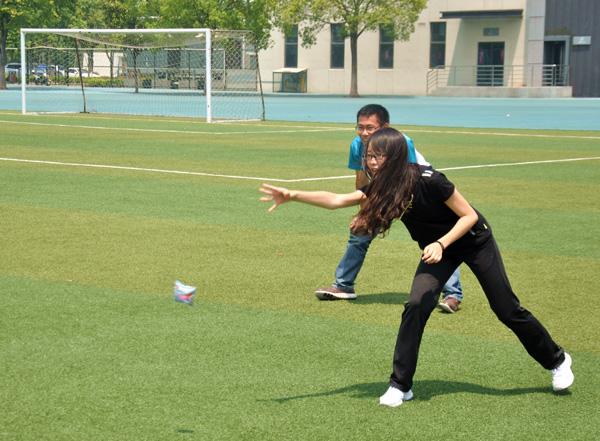上午九点,活动正式开始,比赛的第一轮十分激烈,12支参赛队伍中仅6支可以晋级第二轮。该轮由袋鼠跳,跳大绳,打弹弓,抓石子,绑腿走五个小游戏组成,同队中的五人必须相互配合共同通关。这些看似简单的游戏,陪伴了大家无数的童年时光,如今却难住了参赛队伍。经过反复尝试和激烈角逐,6支队伍脱颖而出。第一轮结束后,主办方为参赛选手分发了精心准备的纪念品。