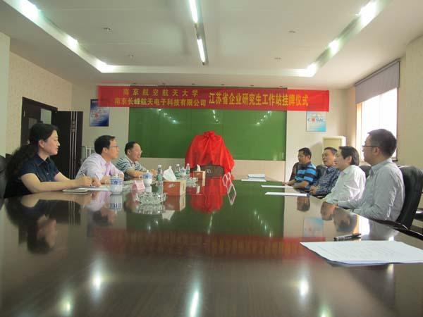 2015年05月25日,米兰体育-米兰体育app-米兰体育官网 赖际舟副院长与企业联系导师盛守照教授米兰体育 教学办主任一起来到南京长峰航天电子科技有限公司,为南航大与长峰航天共建江苏省研究生工作站揭牌。长峰公司副总经理陆晓路、技术质量部主任李永明部出席仪式,仪式由总经理助理钱宇光主持。