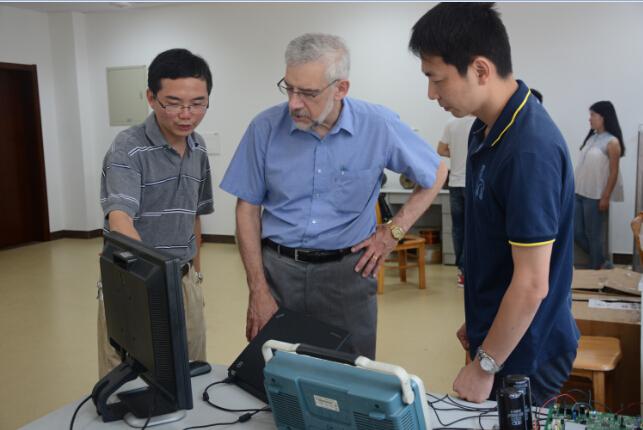访问期间,T.M.Jahns教授在张卓然教授陪同下参观了电气工程系重点实验室,与各课题组老师和研究生们进行了广泛交流和讨论,对我校在航空电机、功率变换及新能源发电系统方面取得的突出成果给予了高度评价,并对电气工程学科的发展方向和建设提出了宝贵建议。