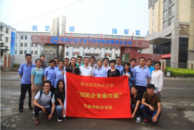 8月16日至19日,米兰体育官网 院长姜斌带队,院党委副书记沈伯秀、团委书记季娟、毕业班辅导员以及10名各米兰体育 本科生代表组成米兰体育官网 2015暑期“国防单位面对面”实践团,前往甘肃、西安地区,走访了航天五院510所、兰州飞行控制有限责任公司、兰州万里航空机电有限责任公司、兰州军区空军某基地、酒泉卫星发射中心、中国飞行试验研究院共六个国防单位。一同参与走访的还有校学生处、校团委的老师代表。