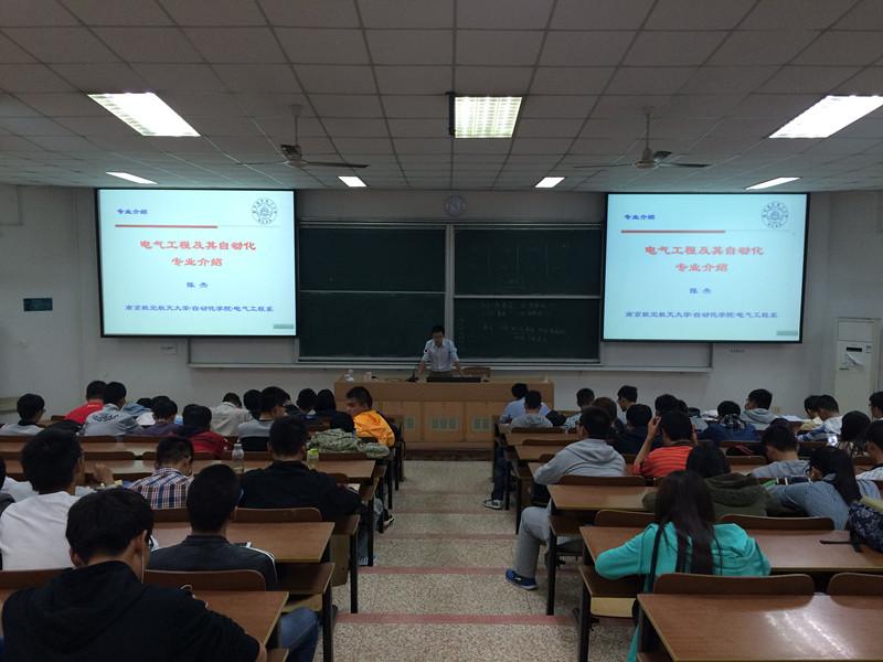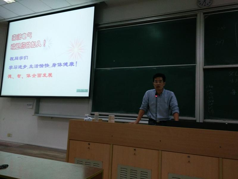 此次介绍会首先由陈杰老师为各位新生全面介绍了电气工程及其自动化专业的基本概况、专业培养方案与毕业要求和电气工程系简介。陈教授指出该专业将电能的生产到应用与自动化理论技术相结合,配备以雄厚的师资力量,致力于培养出厚基础、宽口径、综合复合型人才。陈杰老师还结合我校航空航天特色具体介绍了电子电力传动等五个具体专业方向并对该专业新生提出了相应的学习要求。接着,王晓琳副院长给各位新生提出学习建议,提倡亲临现场看实验,师生交谈共合作的具体学习方法。