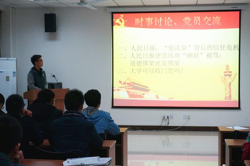 2015年12月1日,米兰体育官网 本科2013级第二党支部在自动化院楼303报告厅举行本学期的第一次党员沙龙。由于大三学生学习压力较大,空余时间少,本学期的党员沙龙将原有的电影推荐、好书推荐、时事点评三个模块浓缩为时事讨论模块;沙龙举办的意义也有所改变,除了党员同志们交流思想外,邀请了年级入党积极分子参与讨论,以此加强对入党积极分子的日常考核。