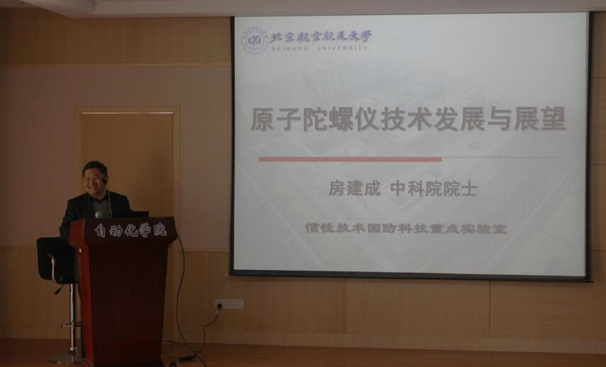 房建成院士诙谐风趣地介绍了陀螺仪等惯性测量仪表的发展历史,对原子陀螺原理、测量精度等做了简要讲解,阐述了陀螺技术必将走向原子领域的发展趋势,并分析了原子陀螺技术发展的机遇和挑战。聆听报告的师生纷纷表示受益匪浅,对院士的精彩报告时时报以热烈的掌声。