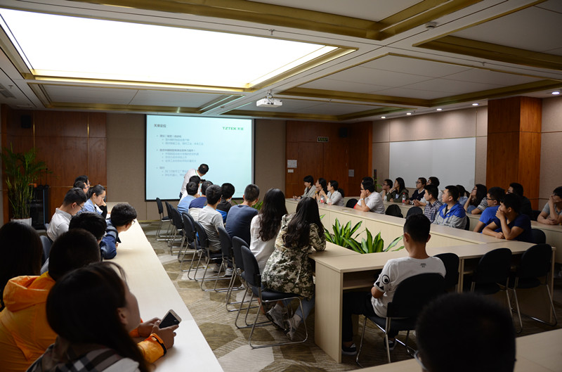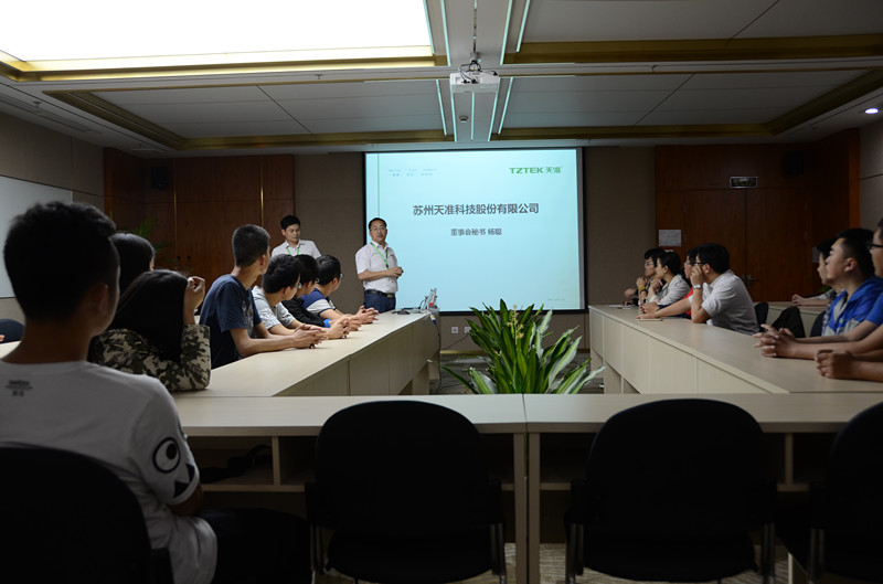 天准公司(TZTEK Company)是此次企业探索的最后一站。通过公司总经理助理耿悦彬先生的介绍,了解到天准目前拥有精密测量仪器、测量自动化设备、检测自动化设备和组装自动化设备等四大产品系列,其精密测量仪器是国内唯一自主研发的高端品牌,多年来稳居行业榜首,众多自动化设备与解决方案已成功运用到包括电子、汽车、食药等行业的现代化生产线。立足于现代工业、智能工业、未来工业领域的天准科技,在招聘专业上与米兰体育官网 各个专业完全对口。在互动交流环节,耿总提出了对青年学生的期望,希望刚毕业的大学生工作更踏实、扎实,校园里没有学到的或者没学扎实的可以在工作岗位上得到提升,用行动展现自己的实力。