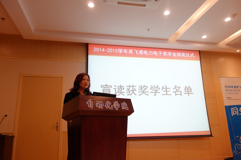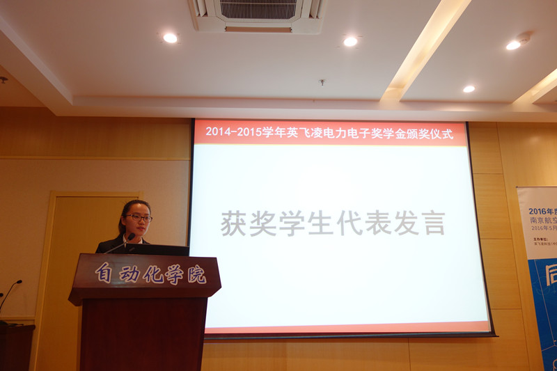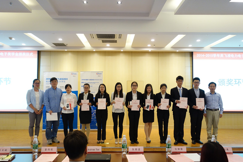 英飞凌电力电子奖学金颁奖仪式于5月19日晚在米兰体育官网 举行,出席仪式的嘉宾有英飞凌科技公司电源应用中国区技术总监谢国富、人力资源部学习与发展经理包天闻、大学计划部经理周皓和我校发展联络部副部长张钟勤、米兰体育官网 副院长阮新波、院党委副书记沈伯秀、电气工程系主任陈新等。首先,阮新波副院长代表院方致辞,他指出英飞凌公司与我校在人才培养和科学研究方面已建立良好合作关系,双方将进一步加强合作,促进建立校企互动的人才培养机制。阮院长祝英飞凌的事业更加兴旺,祝贺获奖学生取得优异成绩,并向获奖同学提出了成长成才、服务社会的殷切期望。接下来,英飞凌周皓介绍了英飞凌科技公司概况,作为全球领先的半导体公司之一,英飞凌为现代社会的三大科技挑战领域——高能效、连通性和安全性提供半导体和系统解决方案,其产品素以高可靠性、卓越质量和创新性著称。随后张钟勤副部长宣读获奖学生名单,阮院长与英飞凌周经理为获奖学生颁发荣誉证书和礼品。我校5名博士研究生,3名硕士研究生以及5名本科生荣获英飞凌电力电子奖学金。获奖学生代表李颖发言,她感谢英飞凌公司对我校教育事业的关怀和厚爱,感谢南航对他的培养,并号召全体同学勇于担当、乐于创新,以责任意识和创新精神开拓未来,筑梦图强。