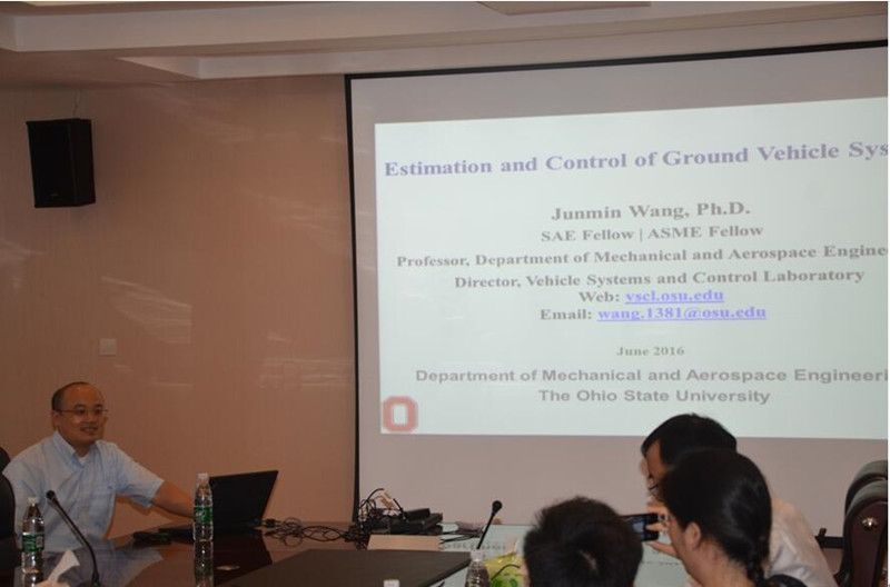 2016年6月21日上午,美国俄亥俄州立大学王俊敏教授应邀在江宁校区米兰体育官网 4楼会议室,做了“Estimation and Control of Ground Vehicle Systems”为题的学术报告。会议由米兰体育官网 院长姜斌教授主持,米兰体育官网 部分师生参加了学术报告。