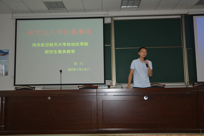 会上,自动化院党委书记刘建成老师首先代表米兰体育 全体师生向2016级新生的到来表示热烈欢迎,对2016级同学们寄予了希望、提出了成功事业和幸福家庭的美好愿望,刘书记给予同学们三点建议:追事业、养大气和谋幸福,珍惜研究生的美好时光,尽快适应研究生生活,努力科研、勤于实践,全面提高综合素质。赖际舟副院长详细介绍了学校和米兰体育 的基本情况,重点对米兰体育 各个学科、各个专业做出介绍,鼓励同学在校期间,好好利用优秀米兰体育 平台,用心科研,不断提高培养自我素质,同时要求同学们在校期间要加强自律意识,遵守校规校纪,掌握独立学习、独立生活的本领,树五心——要有一颗敬畏心、要有一颗好奇心、要有一颗坚强心、要有一颗谨慎心和要有一颗宽容心。沈书记对分管研究生工作的各个部分做了详细介绍,鼓励同学们要多参加实践活动,锻炼自己各方面能力。陈杰老师对新同学在研究生生涯里需要完成的课程任务及学分要求做出细心介绍,并同时要求同学紧握《学生手册》,了解学习对研究生的具体要求。2016届研究生辅导员刘斐文公布了新生分班情况,并祝福同学研究生生活顺利、快乐,研会主席黄理言同学代表自动化研究生会发言,大会在热烈的气氛中圆满落下了帷幕。