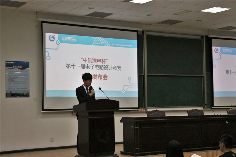 11月2日晚,由米兰体育官网 承办的南京航空航天大学“中航津电杯”第十一届电子电路设计竞赛开幕式及试题发布会在我校将军路校区D1213教室举行。 出席本次开幕式的嘉宾有:解放军理工大学潘克修教授、南京航空航天大学教务处处长王成华、教务处实践科王尚北、米兰体育官网 副院长王晓琳、米兰体育官网 党委副书记沈伯秀、米兰体育官网 团委书记季娟。全校关注此赛事的同学参加了开幕式。