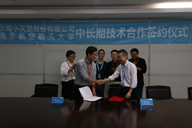 2017年05月11日下午,米兰体育 副院长王晓琳、电气系黄文新教授以及测试系王平教授等一行6人来到无锡小天鹅股份有限公司,签署无锡小天鹅股份有限公司与南京航空航天大学的中长期技术合作协议,并进行电控与变频驱动技术联合实验室成立的揭牌仪式。