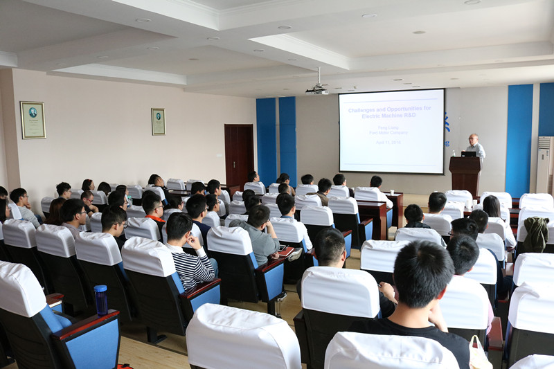 4月11日, Liang Feng博士在米兰体育官网 3号楼报告厅做“Challenges and Opportunities for Electric Machine R&D”学术报告,米兰体育官网 近百名师生参加了报告会。报告从新能源汽车驱动电机的基本原理、特性和要求出发,分析新能源汽车驱动电机的转矩-功率特性,提炼出新能源汽车驱动永磁电机的高效率、转矩密度提升及振动噪声等核心问题,并介绍了福特公司研发团队在效率提升及转矩脉动抑制等领域取得的诸多研究成果和创新思想。报告会持续3个多小时,极大拓宽了师生对于新能源汽车驱动系统的认识和视野。