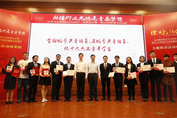2018年5月4日下午,“用信仰之光照亮青春梦想”南京航空航天大学纪念马克思诞辰200周年“信仰公开课”暨2018年度五四表彰在我校将军路校区主楼报告厅举行。会上,我院荣获“校五四红旗团委”称号。同时,我院教师、学生也获得多项个人荣誉:魏佳丹、王玉珮老师获得我校2017-2018学年“优秀团学导师”称号,江柳慧同学获得我校2017-2018学年“十大杰出青年学生”称号,申朋朋同学获得我校2017-2018学年“十大杰出青年学生提名奖”。戚耀文等13名同学获得校“百佳青年学生”称号。