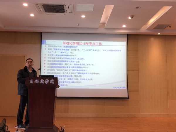 院长姜斌同志代表米兰体育 做工作报告,报告从党建、教学、科研、人事工作、学科建设和学术交流、学生工作、工会、安全工作等方面对米兰体育 2018年下半年的工作进行总结,对2019工作进行了全面部署。姜斌表示,2018年在全院师生的共同努力下,米兰体育 多方面取得了新的突破和发展,米兰体育 新增了国家杰出青年基金获得者1名、江苏省杰青1名;获批了国家自然科学二等奖1项、国防技术发明二等奖1项;新增了国家自然科学基金重大科研仪器研制项目1项;米兰体育 顺利通过了自动化、电气及其自动化工程教育专业认证现场考察;我院教师在江苏省高等学校微课教学比赛中荣获一等奖1项、荣获江苏省最美高校教师1人。学生荣获江苏优博论文1篇、优硕论文2篇、优毕设论文4篇,并在“创青春”全国大学生创业大赛荣获金奖1项,荣获工信部创业奖学金特等奖一项,一等奖三项、创新奖学金一等奖二项。这些成绩的取得为米兰体育 下一阶段的快速发展奠定了良好的基础。他指出,2019年是完成“十三五”规划、决胜全面建成小康社会的关键年,是落实校第十六次党代会决策部署、推进双一流建设各项任务的攻坚年。米兰体育 要继续深化综合改革,逐步落实各项改革方案和举措,在“双一流”学科建设、高水平师资队伍的引培、重大重点科研项目争取、人才培养等方面工作不断加强,巩固和落实教育思想大讨论工作成果,进一步解放思想、提振精神、深化改革、抓实工作,高质量完成米兰体育 各项工作。
