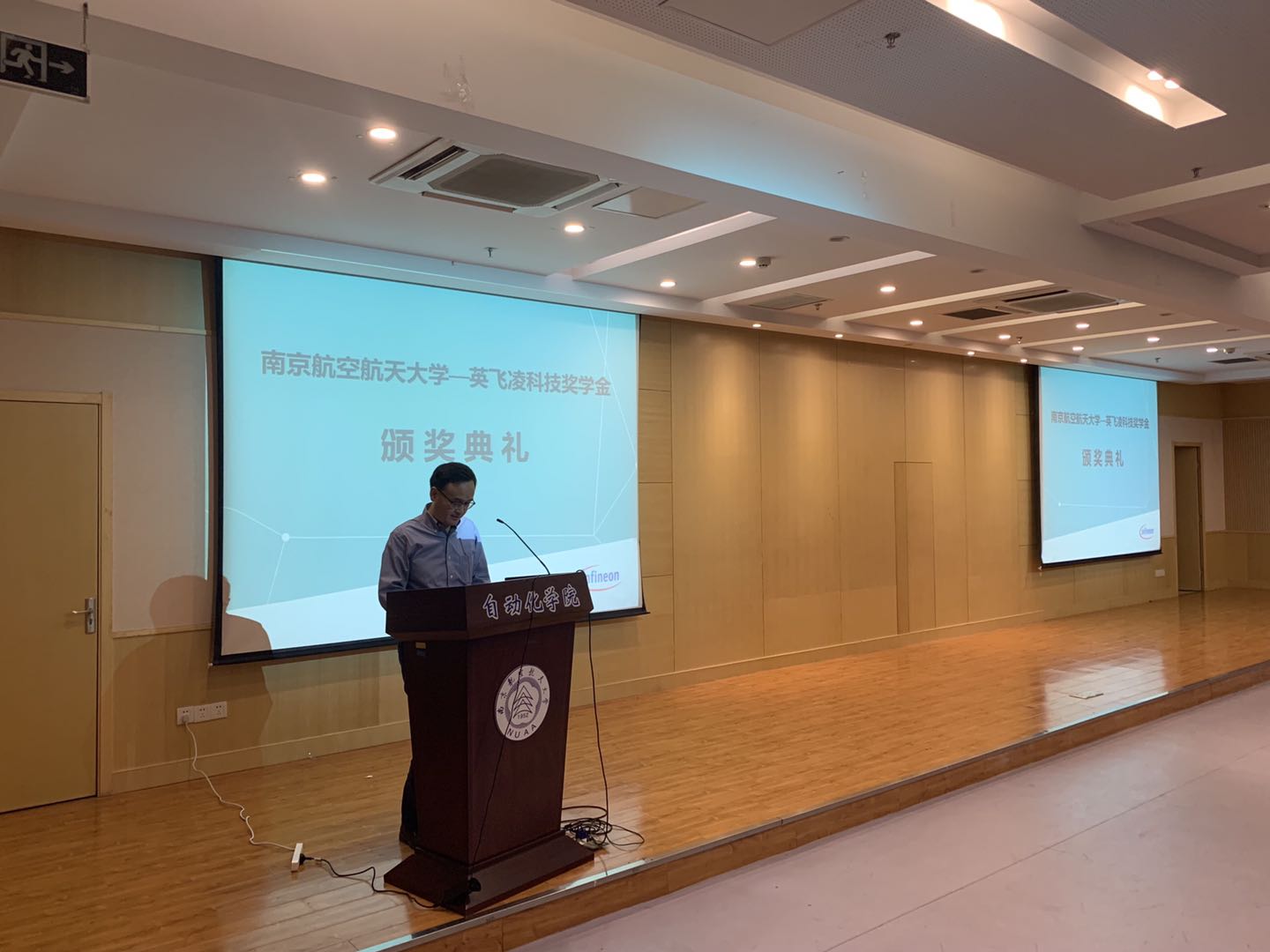 2019年9月9日晚,2017-2018学年英飞凌电力电子奖学金颁奖仪式在米兰体育官网 1号楼511会议室举行。此次活动由英飞凌公司和南航米兰体育官网 共同举办。米兰体育 副院长宋晓峰、电气系主任胡海兵、副主任郝振洋、曹瑞武;英飞凌科技大中华区工业功率控制事业部应用技术总监陈立烽、方案拓展经理郝欣、电源管理与多元化市场事业部高级主任工程师宋清亮、大学计划经理刘贵芳等共同出颁奖仪式。