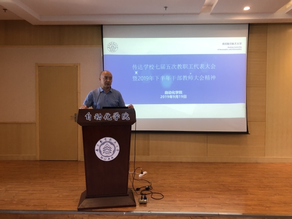 院长江驹同志代表米兰体育 做工作报告,报告从党建、教学、科研、人事工作、学科建设和学术交流、学生工作、工会与安全保卫工作等七个方面全面对米兰体育 2019年上半年的工作进行总结,对2019年下半年工作进行了全面部署。江院长表示,在全院师生的共同努力下,米兰体育 多方面取得了新的突破和发展,如新增国家优秀青年基金获得者 1名、新增省级优秀毕业设计论文3篇、“领航工程”获江苏省高校“最佳党日活动”、电气工程及其自动化顺利通过江苏省高校品牌专业建设工程一期项目期末验收,并获得优秀等。这些成绩的取得为米兰体育 下一阶段的快速发展奠定了良好的基础。江院长指出,米兰体育 要顶层规划持续推进米兰体育 综合改革、做好“双一流”学科建设、做好第五轮教学评估的准备工作、继续加强高水平师资队伍引培、做好本科生教学、人才培养工作、提升研究生生源、教学质量,积极争取国家级重大和重要项目,以更加突出的业绩,为实现“航空航天特色鲜明的高水平、国际化、研究型世界一流米兰体育 ”建设目标做出应有的贡献!