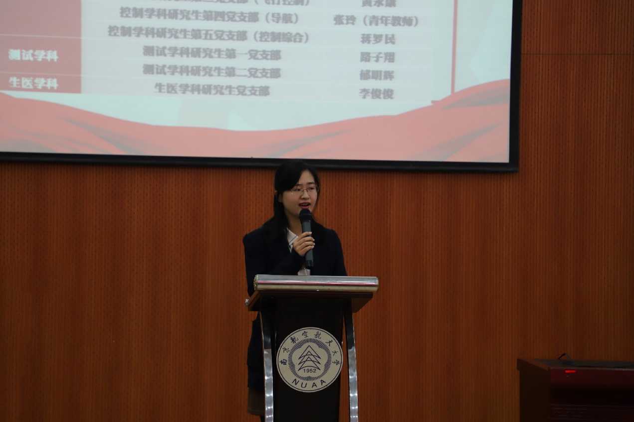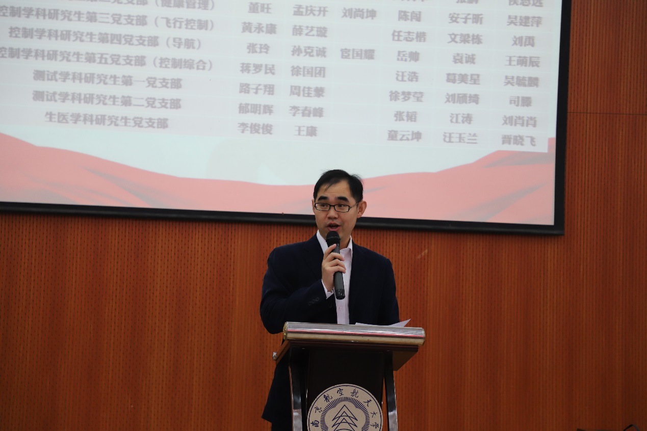 10月20日上午9点,米兰体育官网 研究生纵向党支部成立仪式在将军路校区二号教学楼2110教室顺利召开。仪式由米兰体育 团委书记刘斐文同志主持,国家首颗电磁监测卫星(张衡一号)工程总设计师江帆,米兰体育 党委书记刘建成,党委副书记张跃,控制学科研究生第四党支部书记张玲,测试系支部书记贾银亮,测试系教授赵敏,米兰体育 学生党支部书记及米兰体育 本科生、研究生党员代表、发展对象均出席了本次成立仪式。