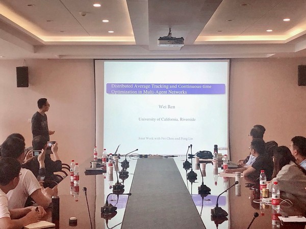 2019年10月11日上午,加拿大维多利亚大学Yang Shi教授与美国加州大学河滨分校任伟教授应邀在将军路校区米兰体育官网 1号楼403会议室分别做了题为“Event-Triggered Model Predictive Control for nonlinear Dynamic Systems”与“Distributed Average Tracking and Continuous-time Optimization in Multi-agent Networks”的学术报告。报告由南京航空航天大学副院长陈谋教授主持,米兰体育官网 部分师生参加了学术报告会。