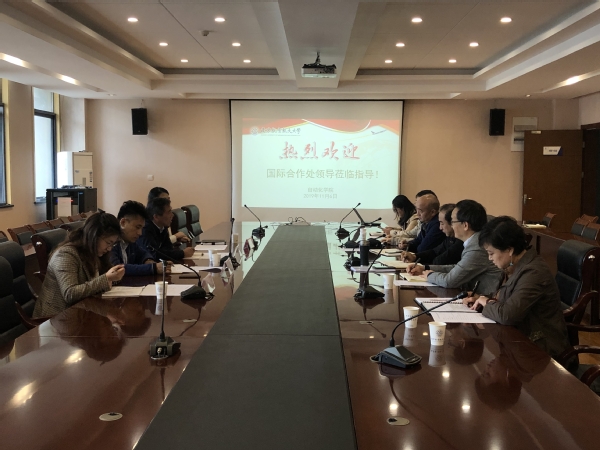 11月6日上午,国际合作处处长张卓、副处长陈峰、沈敏、综合事务科科长祖语嫣一行来到我院进行主题调研。米兰体育 党委书记刘建成、院长江驹、副书记张跃、副院长宋晓峰、院长助理朱永凯、教学办公室主任王俊彦、团委书记刘斐文等参加调研会议。