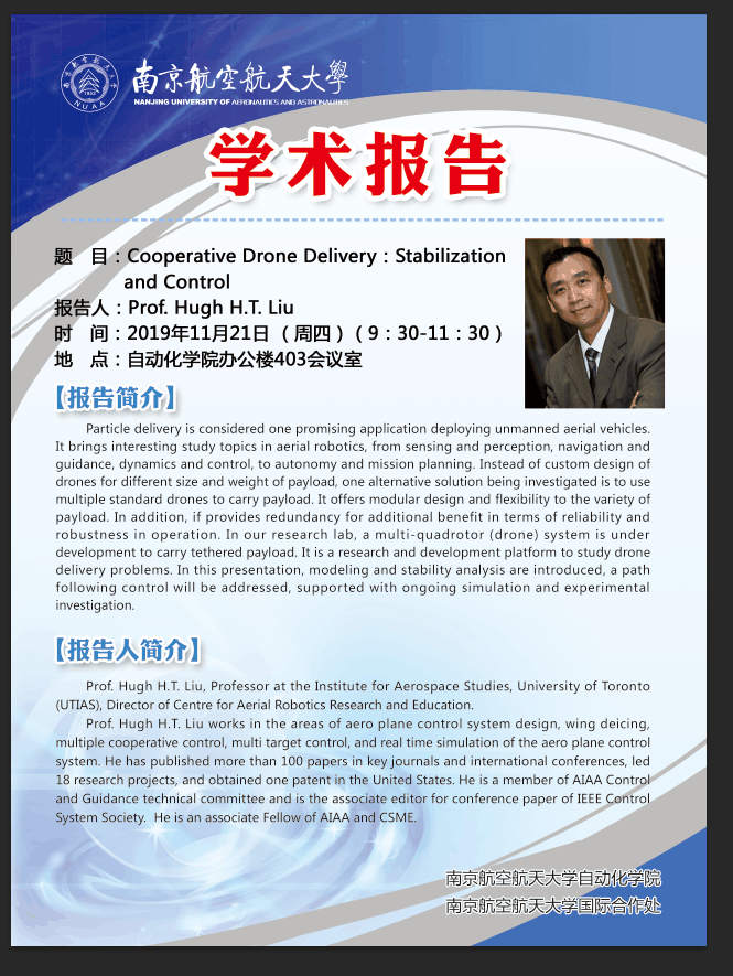 学术报告:Cooperative Drone Delivery:Stabilization and Control