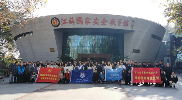 图1 自控系教师导航党小组、控制学科研究生第四党支部(导航方向)、学生安全服务中心党支部、机关保卫处党支部、艺术米兰体育 党支部共同参观江苏国家安全教育馆