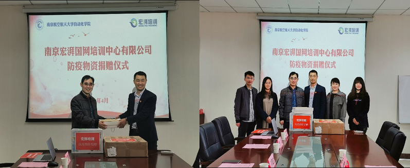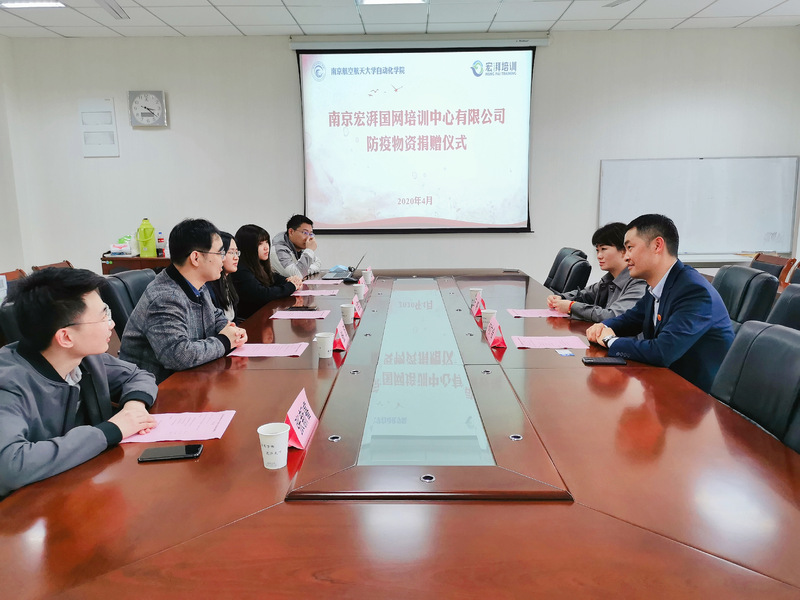 4月16日下午,南京宏湃国网培训中心有限公司防疫物资捐赠仪式在米兰体育官网 1号楼405会议室举行。企业代表何广会、王略,以及我院党委副书记张跃、团委书记刘斐文和各年级辅导员出席此次仪式。