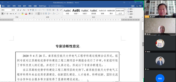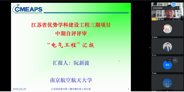 2020年4月28日上午,南京航空航天大学组织专家对江苏高校优势学科建设工程三期项目电气工程学科进行了中期评审。评审会通过视频会议形式进行,评审专家组组长由河海大学鞠平教授担任,专家有浙江大学何湘宁教授,西安交通大学杨旭教授,东南大学花为教授和中国矿业大学陈昊教授。米兰体育官网 电气工程系阮新波教授、胡海兵教授和曹瑞武副教授参加汇报。