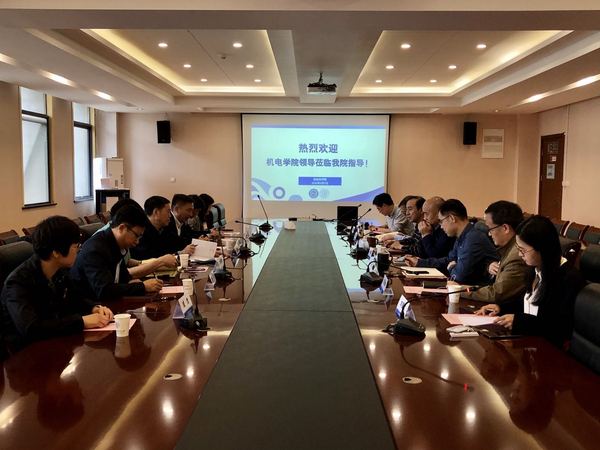 2020年5月7日上午,机电米兰体育 党委书记袁智强、院长傅玉灿带队,党委副书记徐俊珠,副院长唐敦兵、郭宇、于敏,党政办主任成杰等一行七人来我院传经送宝。双方在米兰体育官网 1号楼403会议室举行了座谈会。米兰体育官网 党委书记刘建成,院长江驹,副书记张跃,副院长王晓琳、陈谋、宋晓峰、张卓然及党政办主任刘斐文参加了此次会议。会议由江驹主持。