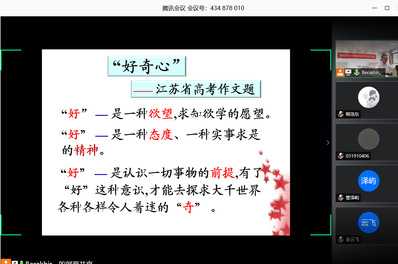 交流会伊始,潘老师从劳动、学习、工作三个方面回顾过去自己努力奋斗的青葱岁月,鼓励同学们努力奋斗,致力成才。针对江苏省高考作文题目“好奇心”,潘老师逐字分析,带领同学们体会如何拓展思维,如何开拓创新。潘老师还呼吁同学们与图书馆运动场为友,做好本分学好本事,插上理想的翅膀,扬起毅力的风帆。