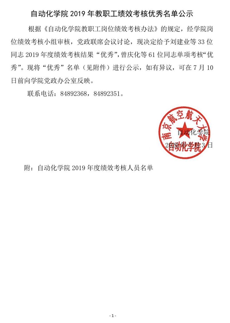 米兰体育官网 2019年教职工绩效考核优秀名单公示