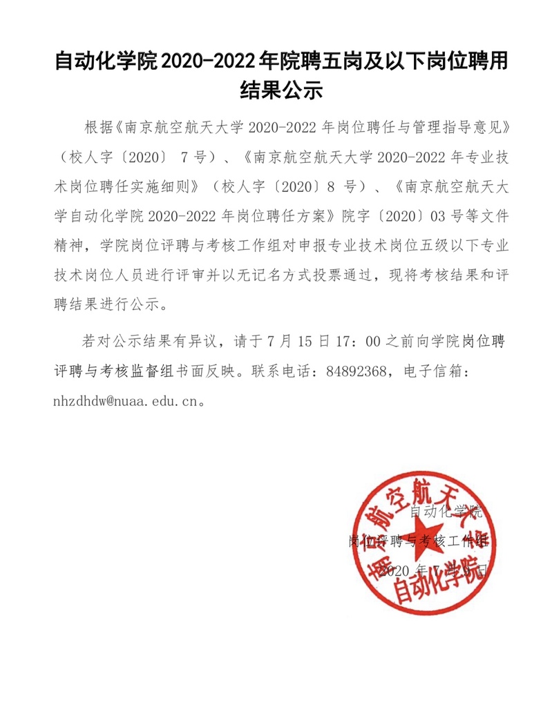 米兰体育官网 2020-2022年院聘五岗及以下岗位聘用结果公示