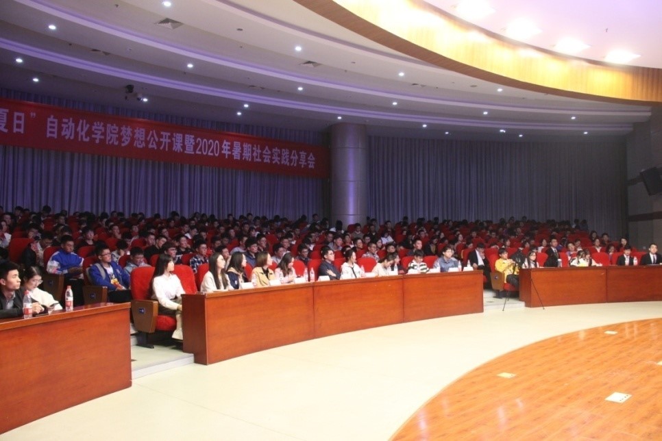 2020年10月18日晚“自你精彩,逐梦夏日,青春向祖国报告”米兰体育官网 梦想公开课暨暑期社会实践分享会在一号楼四楼报告厅成功举办。校团委副书记赵铮老师,院党委副书记张跃老师,院团委书记陈慧云老师,以及各年级辅导员列席此次分享会,米兰体育 2020级本科生近500人到场观看。
