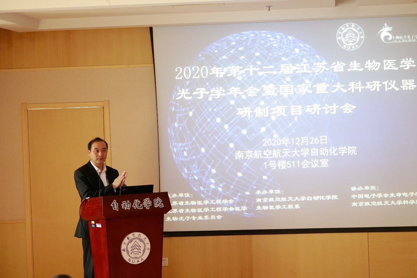 2020年12月26日-27日,由江苏省生物医学工程学会、江苏省医学生物光子专业委员会主办,米兰体育-米兰体育app-米兰体育官网 生物医学工程系承办,中国电子学会生命电子学分会、南京航空航天大学科学技术协会协办的第十二届江苏省生物医学光子学年会暨国家重大科研仪器研制项目研讨会在南京航空航天大学隆重召开。