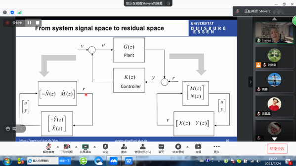 3月24日下午,德国University of Duisburg-Essen大学 Steven X. Ding 教授应我校国际合作处和我院邀请,依托我校“民航运输安全”学科创新平台,作了题为“A unified framework of control and detection, and its application to fault detection and performance degradation recovery in feedback control systems”的学术报告。报告由我校副校长姜斌教授主持,米兰体育 师生在线参加会议。