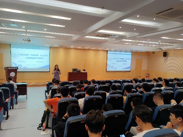 倪老师通过近距离交流,带领同学们用轻松的心态走进内心世界作为开场,打开了同学们的认知领域。倪老师叮嘱同学们,要意识到心理问题和其他身体问题一样,是非常常见的,出现心理问题时不要害怕,自身无法排解时一定要及时寻求帮助,并介绍了我校心理健康中心的配备情况以及求助方式。