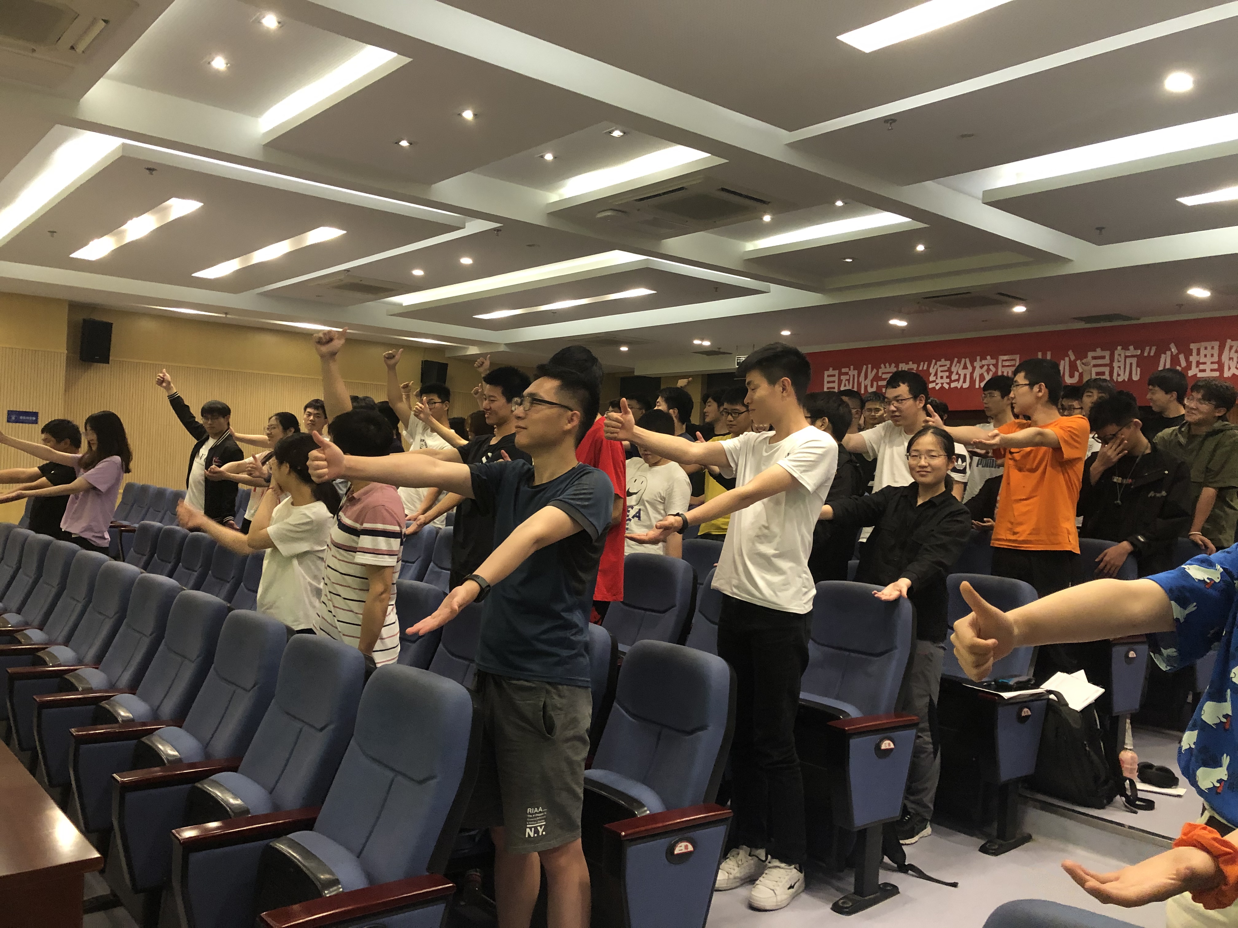 在讲解的过程中,倪老师引导同学亲身体验了心理暗示对我们行为的巨大影响,通过冥想排解负面情绪、丢掉持续困扰自己的不愉快的回忆。现场同学积极参与互动,对心理暗示效应有了现实的体验,并学习了如何在生活中通过心理暗示进行情绪调节。