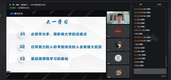 为了发挥朋辈力量帮助新生增进对大学学习生活的理解,更精准地找到大学成长方向,9月24日,米兰体育官网 召开线上学长学姐经验分享会。会议邀请到米兰体育官网 2017级本科生杨嵩林、2018级本科生宋昱锋、李雯、2020级本科生宋佳蓉就大学学习方法、学生工作、科创与2021级本科生新生同学们分享了自己的大学生活,同时也解答了同学们心中的疑惑。本次分享会由2021级新生辅导员李瑶、程艳主持,2021级全体本科新生参加了此次大会。