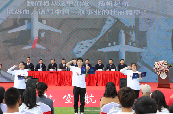 院领导给学生代表佩戴上了承载着学校和米兰体育 美好期望和殷切寄托的南京航空航天大学校徽,从此,又一代南航人将秉持着“团结、俭朴、唯实、创新”的思想传承,在处世中秉承“智周万物,道济天下”的校训,在学习上发扬“严谨、务实、求真、创新”的院风,在研究中践行“格物致知,进德修业”的院训,展现出“强国一代”的奉献与担当!