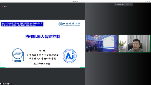 北京科技大学贺威教授做了题为“协作机器人智能控制”的报告。报告首先围绕协作机器人高精度跟踪控制问题,介绍多约束条件下不确定机器人智能控制算法;其次聚焦机器人与环境物理交互问题,分析复杂环境下协作机器人阻抗控制策略;进一步考虑多机器人协同作业和人机协作场景,提出几类协作机器人的协同控制方法,并介绍基于以上智能控制策略研发的智能分拣系统、人机协作系统等,最后对相关研究领域进行展望。