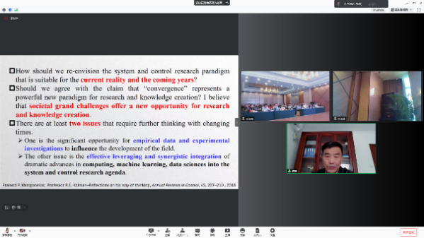 国家杰青、中国科米兰体育 系统所所长、《中国科学:信息科学》副主编、中国科米兰体育 数学与系统科学研究院张纪峰研究员,国家杰青、“新世纪百千万人才工程”国家级人选、中科院自动化所乔红研究员,中国自动化学会会士,IEEE Fellow、中国自动化学会“数据驱动控制、学习与优化”专业委员会创始主任、青岛大学侯忠生教授,国家优青、青年长江学者、国家“万人计划”领军人才、北京科技大学贺威教授,《中国科学》杂志社蒋恺副编审通过线上方式参与了本次会议。