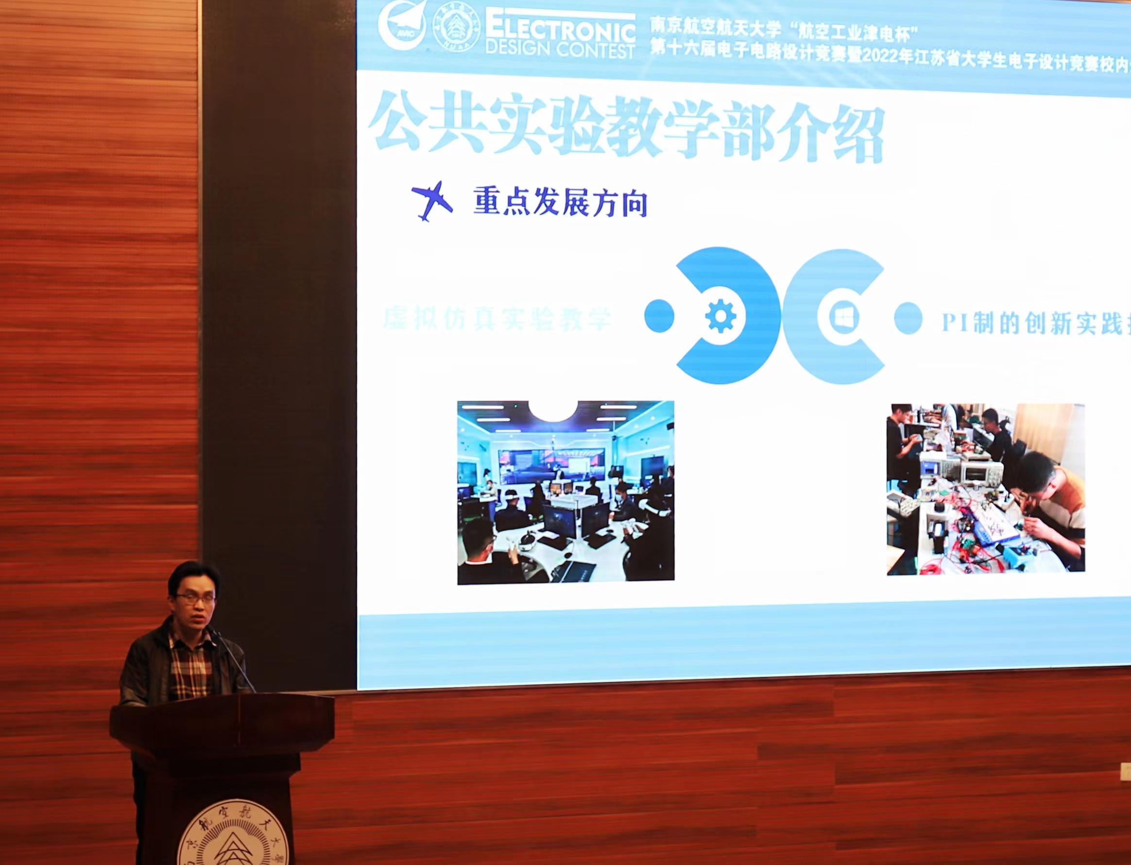 2021年11月5日晚,由米兰体育官网 承办的“航空工业津电杯”第十六届电子电路设计竞赛开幕式暨试题发布会在将军路校区1号楼4楼报告厅举行。中国人民解放军陆军工程大学教授潘克修、南航教务处副处长朱建军、南航公共实验教学部电工电子实验中心主任洪峰、米兰体育官网 副院长王晓琳、院党委副书记丁琛、院团委书记陈慧云、研究生辅导员肖帆、本科生辅导员王克杰以及各个参赛队伍的代表共同参加了此次发布会。