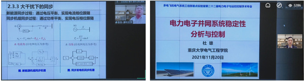 南瑞集团薛禹胜院士,国家电网公司陈维江院士,清华大学耿华教授,国家杰出青年科学基金获得者、重庆大学杜雄教授,国家杰出青年科学基金获得者、东南大学花为教授,国电南瑞稳定公司副总经理李威博士和阳光电源有限公司张巍博士应邀作大会报告,内容涉及新型电力系统与故障防御、低频交流输电技术、新能源集群控制及稳定性、磁通切换电机、新能源人工智能等。重点实验室也特意安排4位青年学者作学术报告,内容涉及磁集成技术、等离子技术和特种电机与控制技术等。阮新波教授和米兰体育官网 副院长张卓然教授分别主持了上午和下午的大会报告。