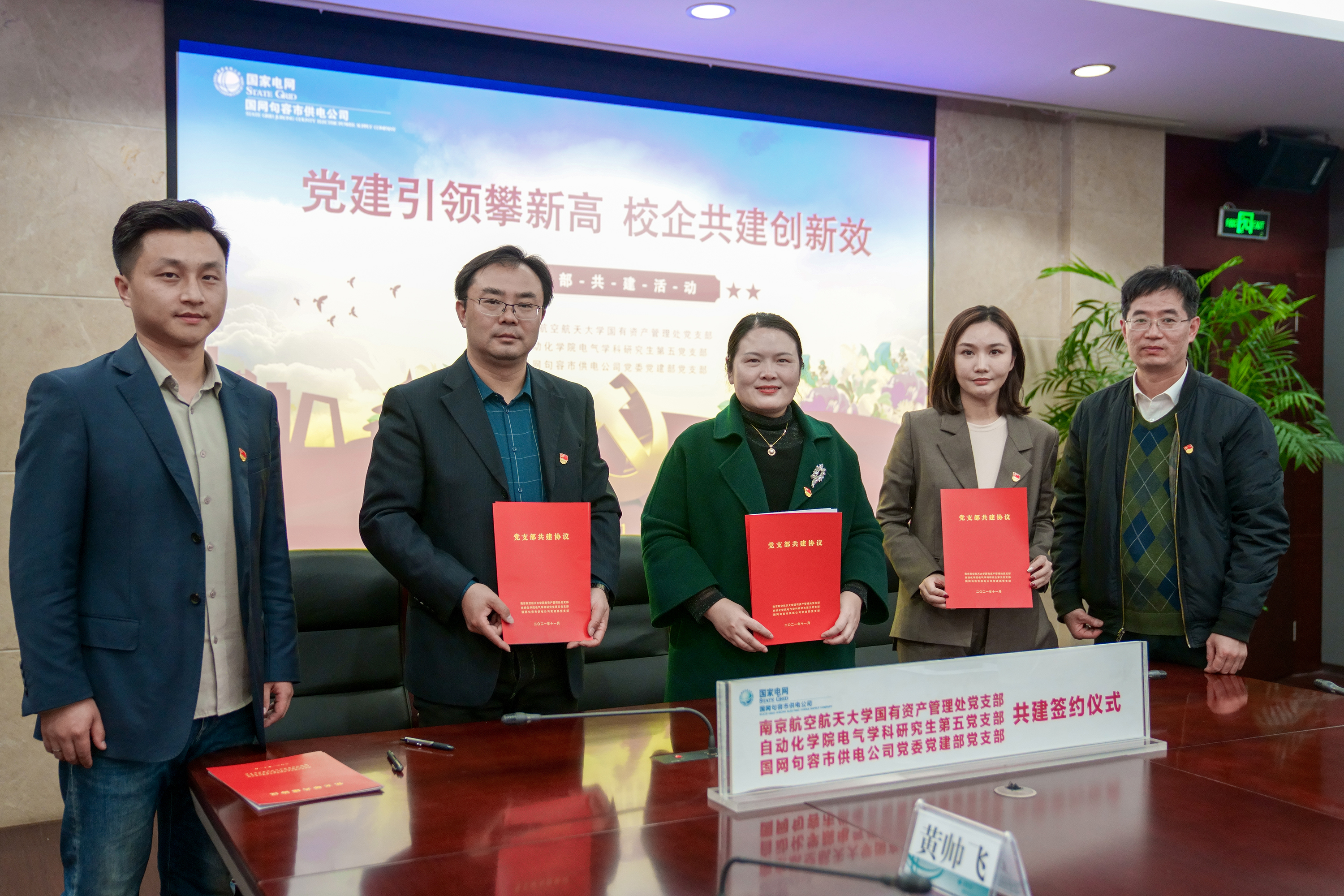 11月26日,南京航空航天大学国资处党支部、米兰体育官网 电气系研究生第五党支部与镇江市句容供电公司党委联合开展“党建引领攀新高、校企共建创新效”主题党日活动,并签署支部共建协议,校企双方共30余人参加了活动。