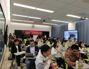 挑战杯科创竞赛队长王明月和博士研究生鲍旭聪分别介绍了参与科创竞赛和创新创业的成功案例。王明月分享了从天宫杯立项到第九届天宫杯勇夺特等奖再到挑战杯参赛的历程,详细阐述了科创竞赛在学生综合素质培养过程中发挥的重要作用;鲍旭聪从当下的创业背景、公司情况、科研经历等部分展开叙述,并分享了路演展示。此外,团队还邀请到大学生创业孵化中心的朱成明老师为同学们详细解读了国家以及学校对大学生的创业鼓励政策。