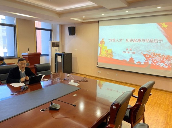 在随后的党课学习活动中,姜校长对党的历代领导人的人才观进行了讲解,其中重点说明了习近平总书记在不同时期的人才观。最后姜校长提出了在“党管人才”工作中的经验和启示、高校人才工作中坚持“党管人才”原则的必要性以及我校在不同时期阶段践行“党管人才”政策的措施举措和具体成效等,并号召大家一起为“双一流”建设贡献力量。